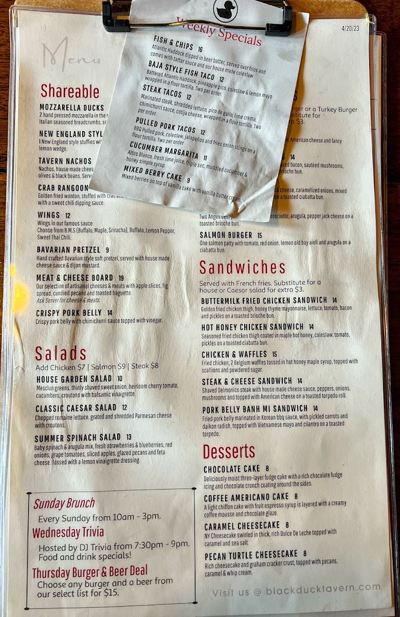 Welcome to Black Duck Tavern, a culinary gem nestled at 31 Warren Ave, East Providence, RI. This vibrant restaurant perfectly balances a welcoming atmosphere with an exceptional menu that caters to diverse palates.